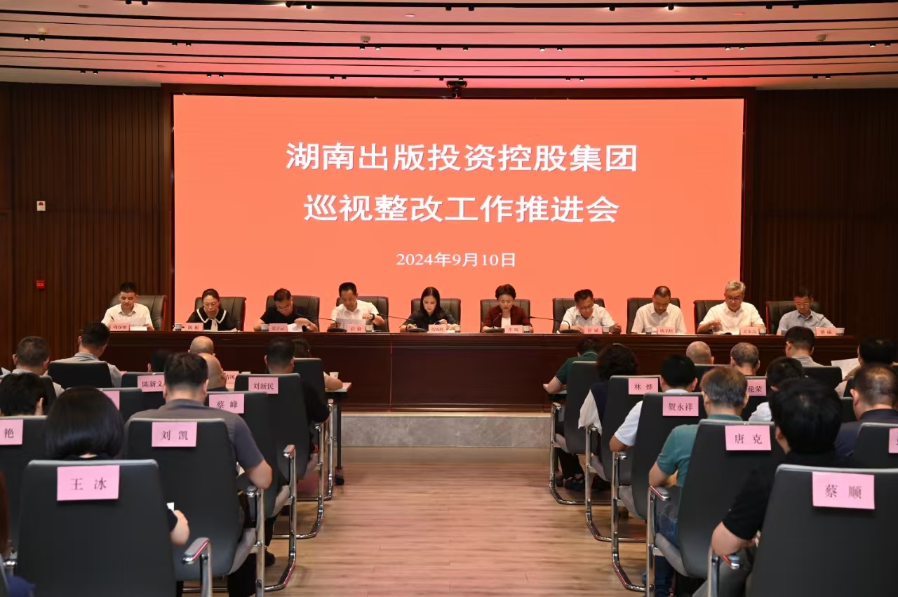9月10日下午,湖南出版投資控股集團召開巡視整改工作推進會,集團黨委書記、董事長賀礫輝出席會議并講話。集團黨委副書記、副董事長、總部機關黨委書記李暉主持會議,在家的集團黨委班子成員出席會議。